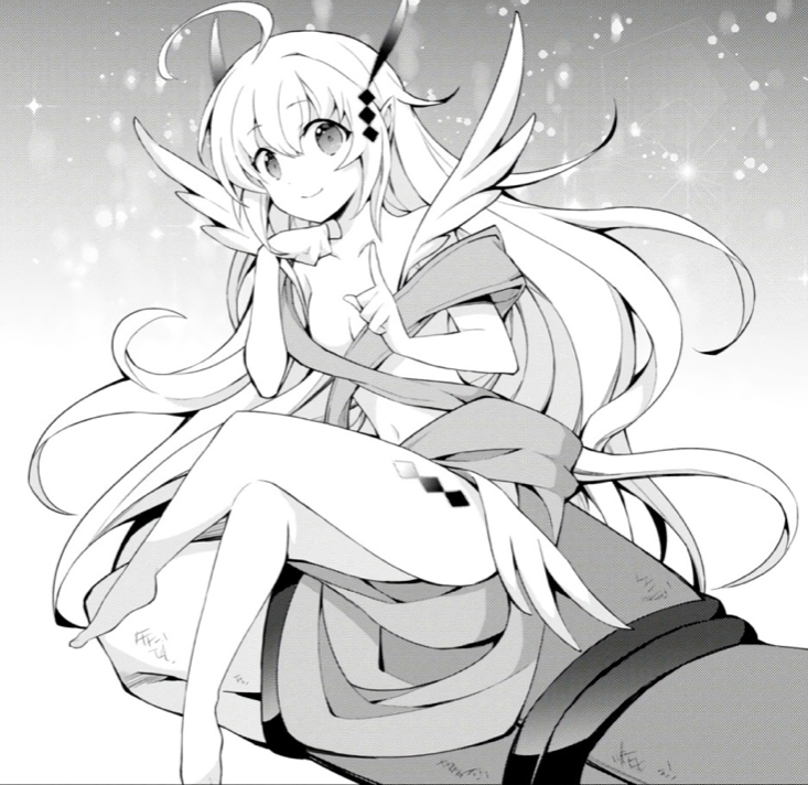 During the mid-climax battle outside the capital, she evolves , one of the Four Great Spirits, Queen of Wind.